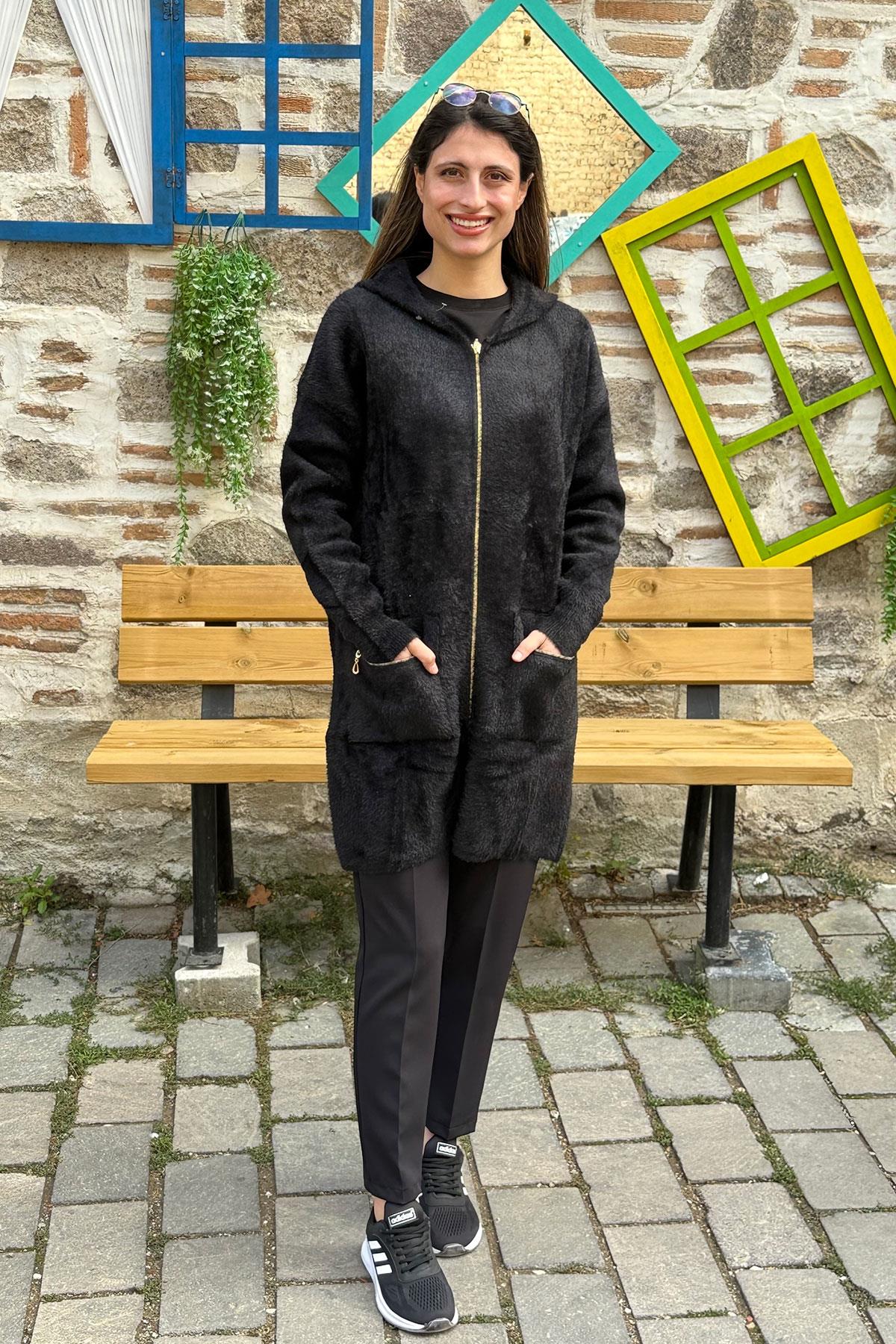 Kapüşonlu Angora Hırka - SİYAH (141792)